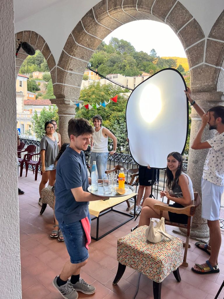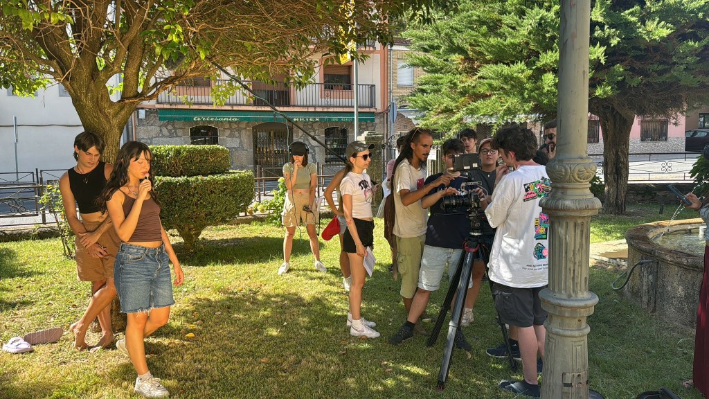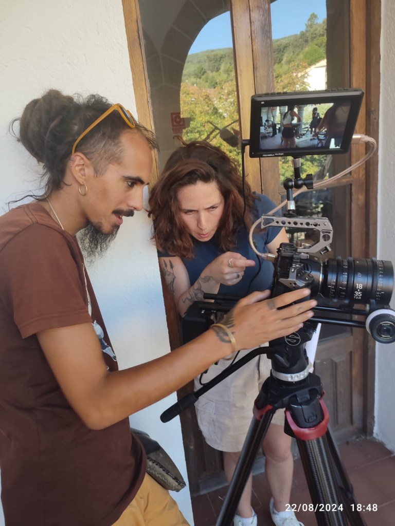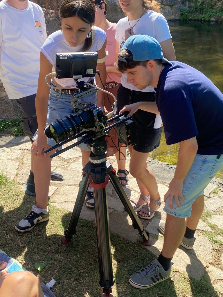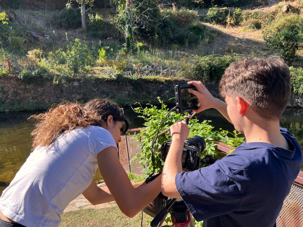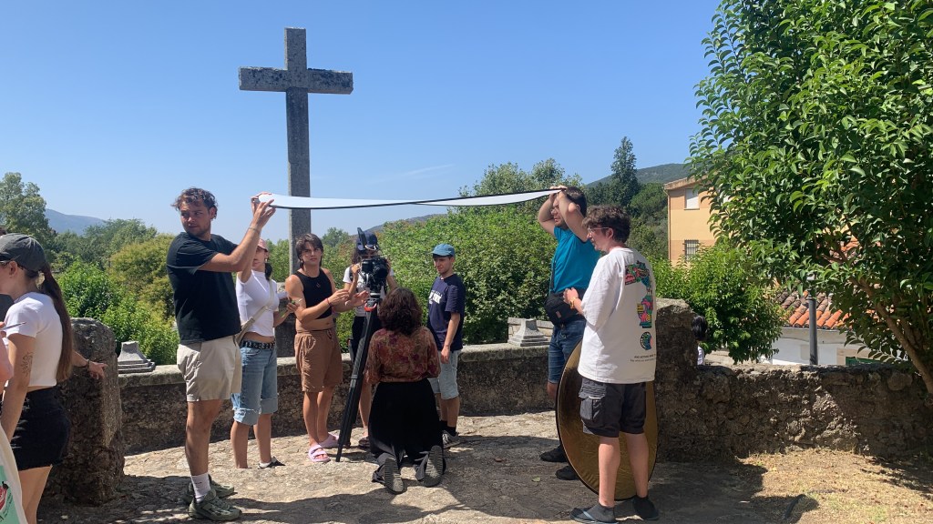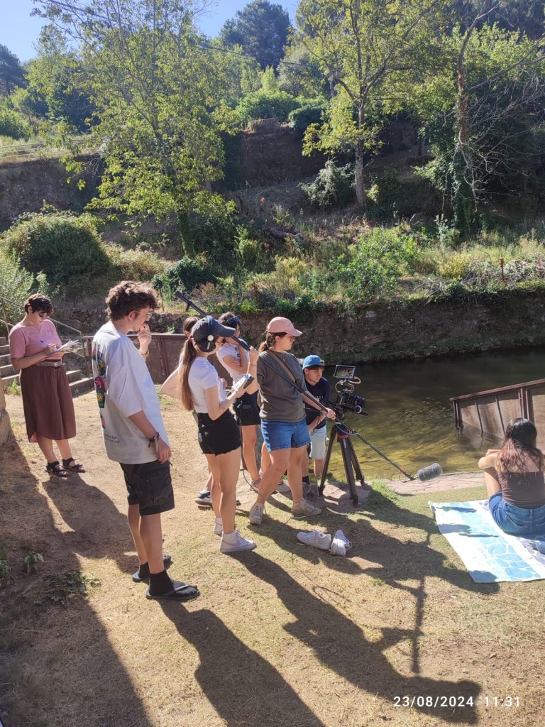 Definido esto comenzaron las jornadas de rodaje, unas jornadas inmersivas gracias a las cuales las personas participantes pudieron probar de primera mano el uso de cada uno de los equipos de los que disponíamos durante el campo de voluntariado, unas jornadas totalmente prácticas a través de las cuales aprender el manejo de los diferentes elementos que formaban parte del rodaje. Las sesiones de rodaje se repartían a lo largo del día; hubo sesiones de rodaje nocturnas, por lo que se trabajó con la iluminación, aprendiendo a iluminar con luz artificial imitando la luz de la luna o con luz en interiores imitando la luz de una hoguera, generando diferentes ambientes y diferentes sensaciones; hubo sesiones de rodaje en las que era necesario realizar movimientos de cámara por lo que se aprendió a grabar cámara en mano; hubo sesiones de rodaje en exterior, por lo que hubo que aprender a controlar el sonido y evitar que sonidos externos al cortometraje se “colasen” dentro de las imágenes que se estaban grabando.