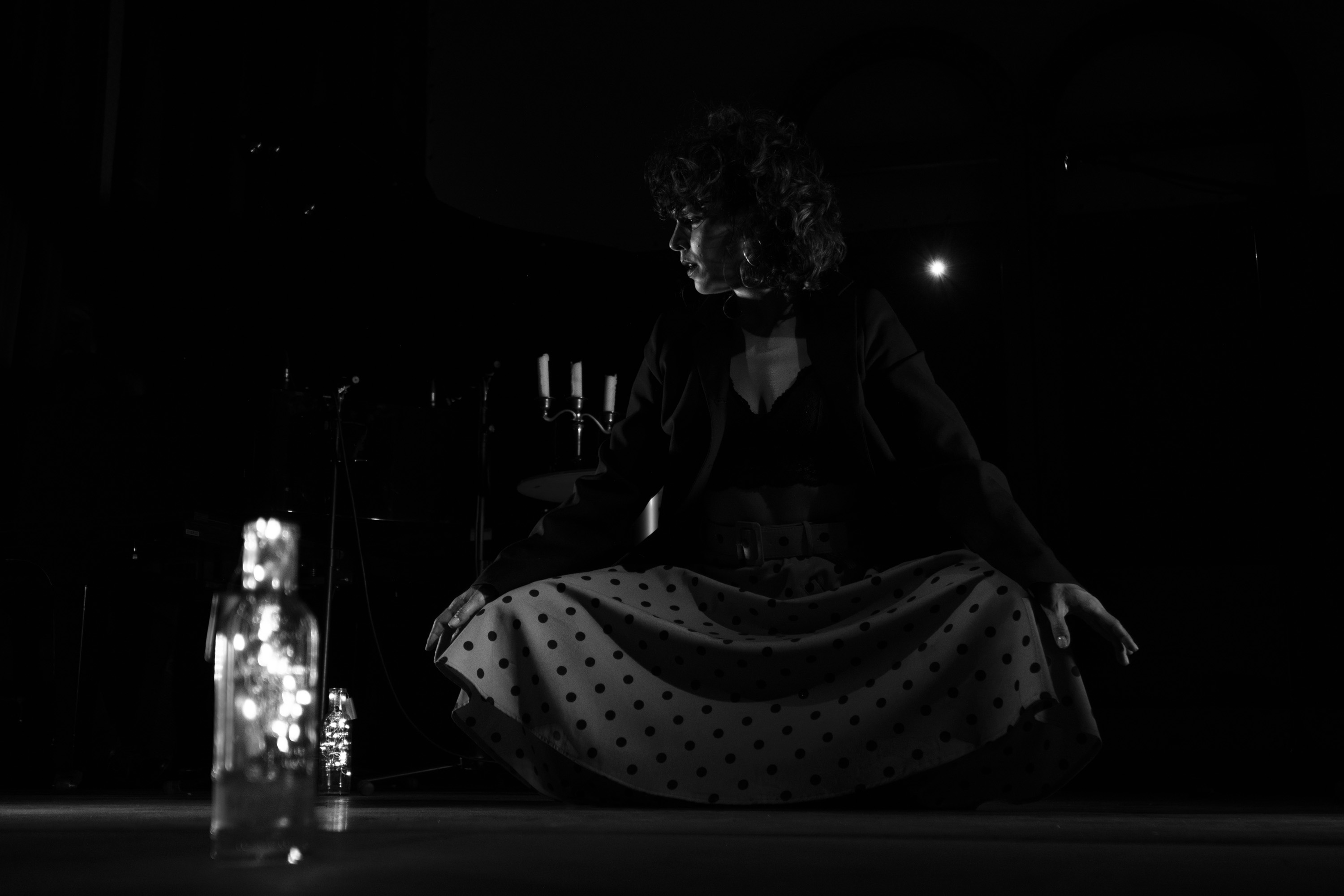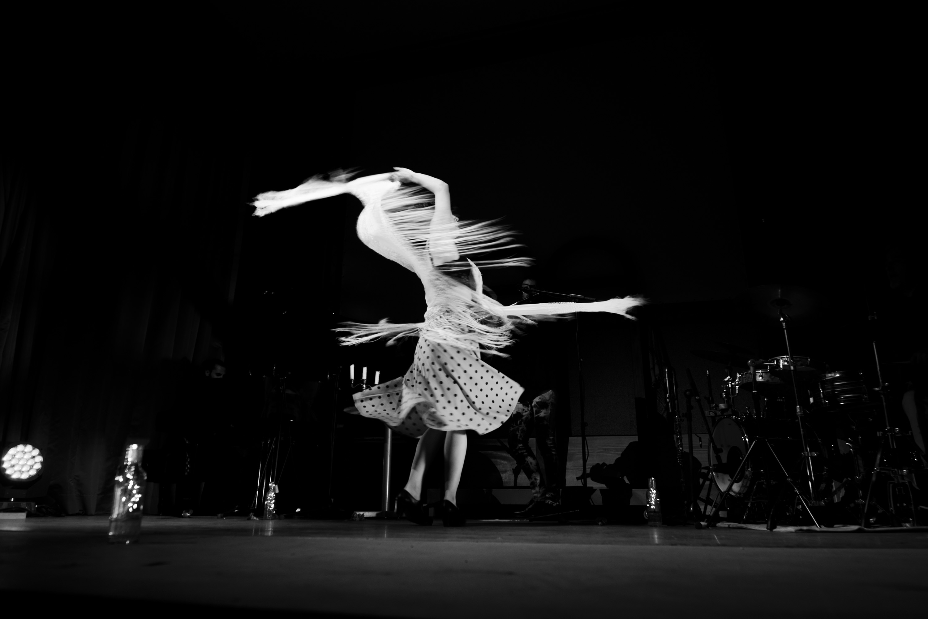 Fotografías realizadas durante la intervención teatral Estación María Zambrano por parte de Elfo Teatro; el espectáculo de danza La Danza de la Luna, a cargo de la bailaora Sonia Franco, el pianista Pablo Rubén Maldonado, y el flautista Alberto Centella; y la acción Enjambrar, a cargo de Tatiana Amorós.