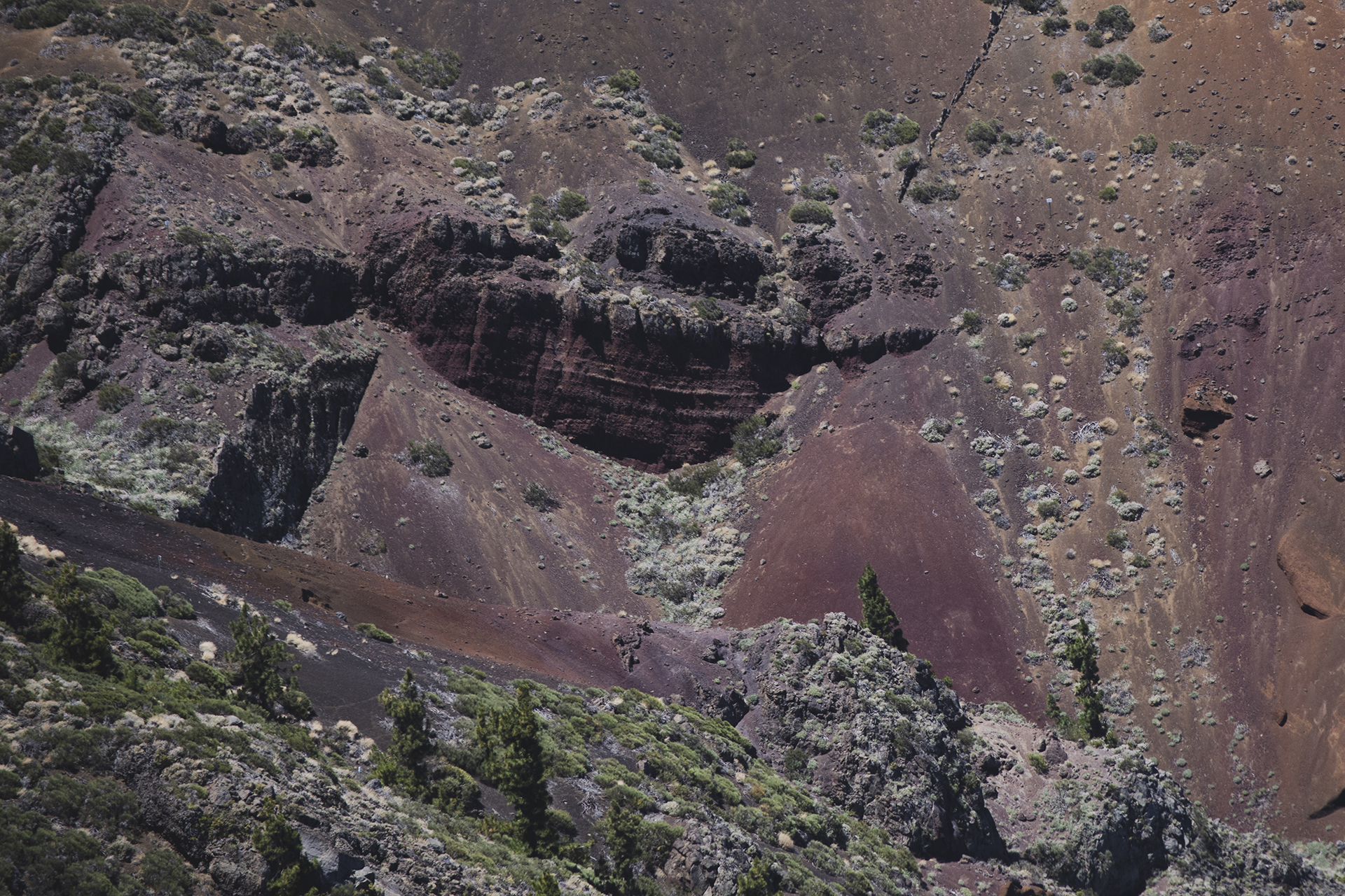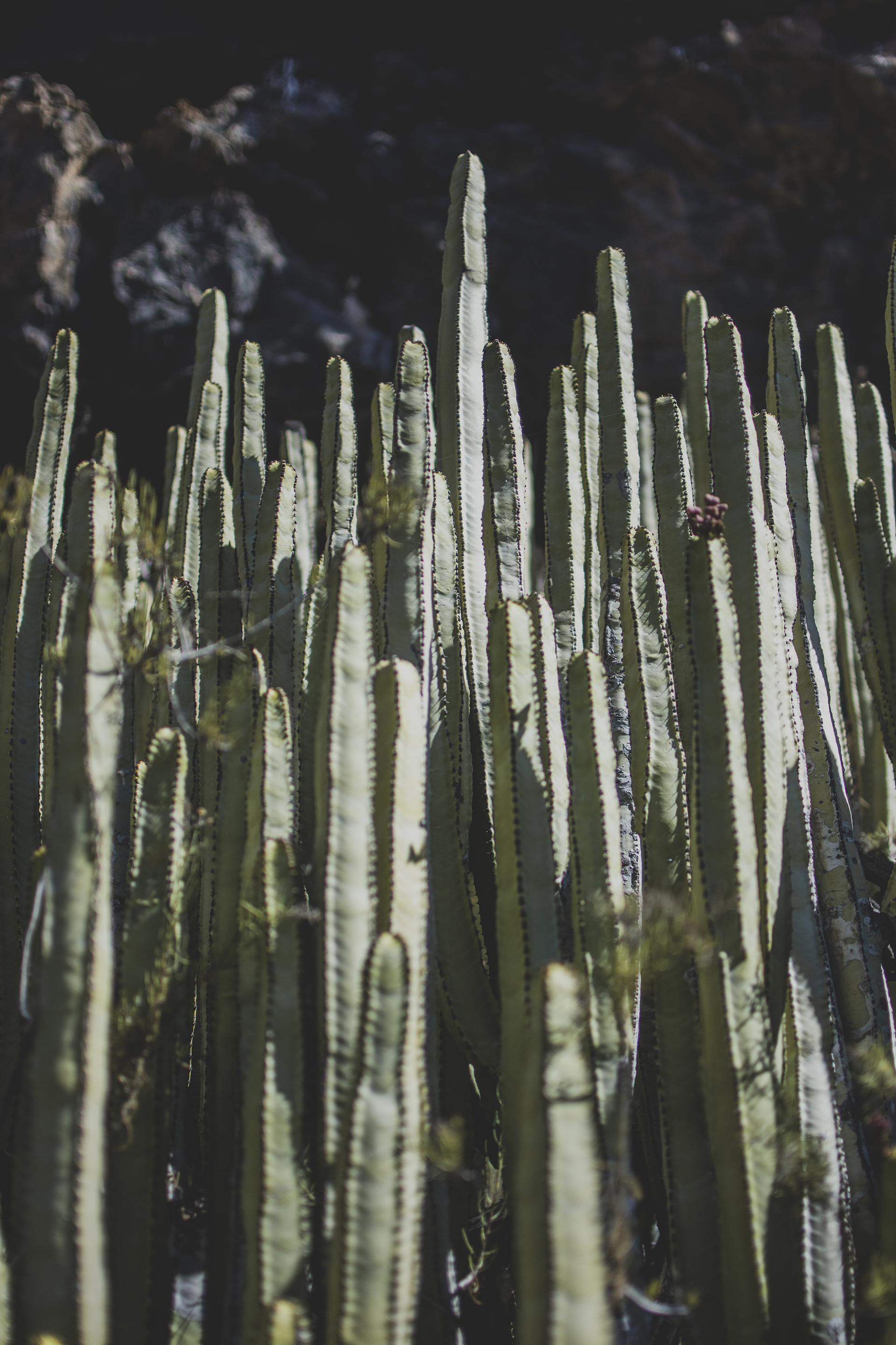 La vegetación en esta isla es como subir por una escalera e ir encontrándose diferentes estadíos, como recorrer diferentes regiones en unos pocos de kilómetros. Arrancar en el oceano, con esas playas formadas por coladas de lava; cantos rodados, arena negra, rocas puntiagudas, rodeadas de tabaibas. Uno de los paisajes más característicos de la costa tinerfeña. Seguir subiendo en altitud y llegar a la zona de las xerófilas, toda esa vegetación característica por sus verdes ténues y su resistencia a la sequía. Formas de todas clases, especies con raices pivotantes que te hacen sentir como en el más remoto de los desiertos, un espacio que te lleva la cabeza a sentir como si estuvieses en el estadounidense Joshua Tree National Park.